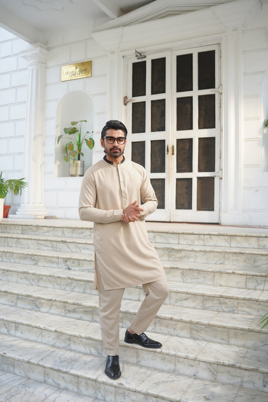 Black standing long heighted ban kameez with matching button