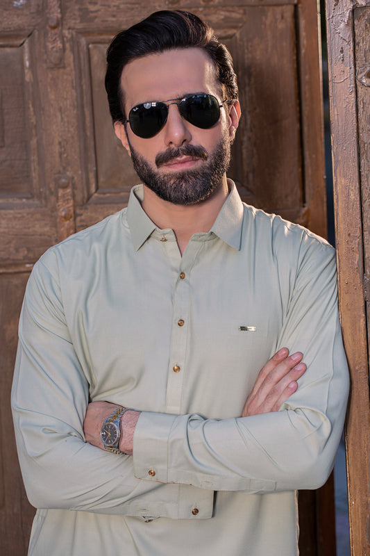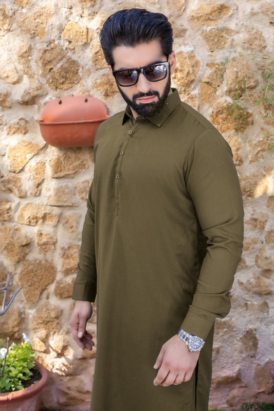 Royal Stitched Suit with Shalwar - Olive