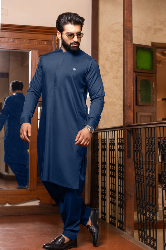 MUGHAL E AZAM COLLECTION STITCHED SHALWAR WITH KAMEEZ - Navy