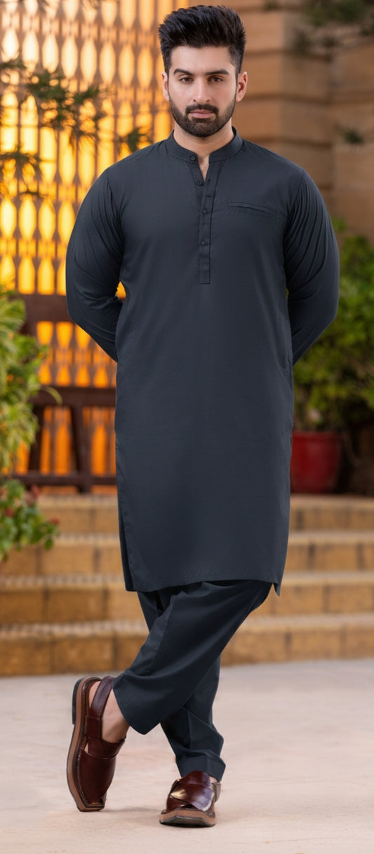 Boski gol gehra collar kurta with golden button, 1.5cm logo & farshi shalwar Collar