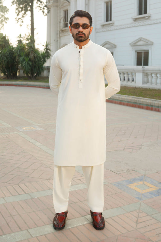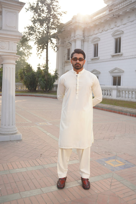 Egg-White Egg-white with double ban bartaik stitch gumpatti fashion and gunmetal button
