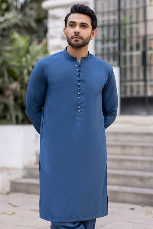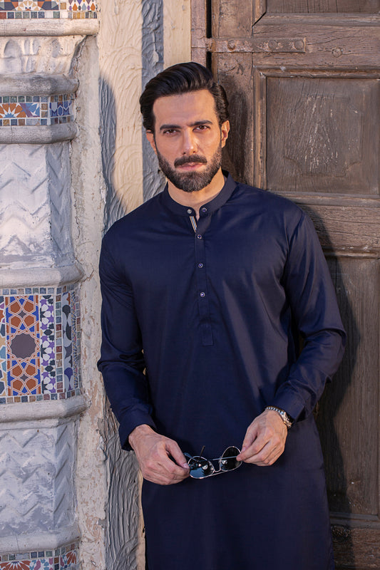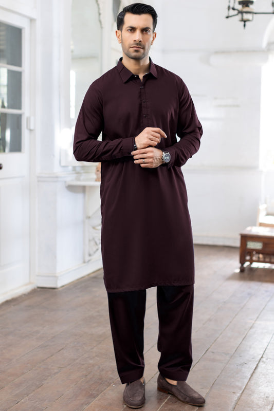 Nawabi Metal Glass Button Stitched Suit with Shalwar - Dark Purple