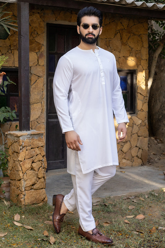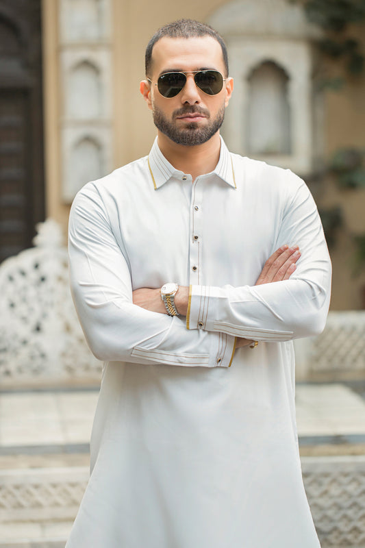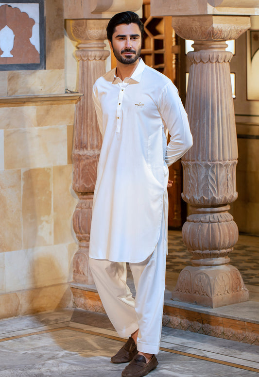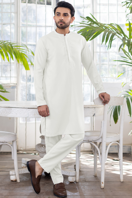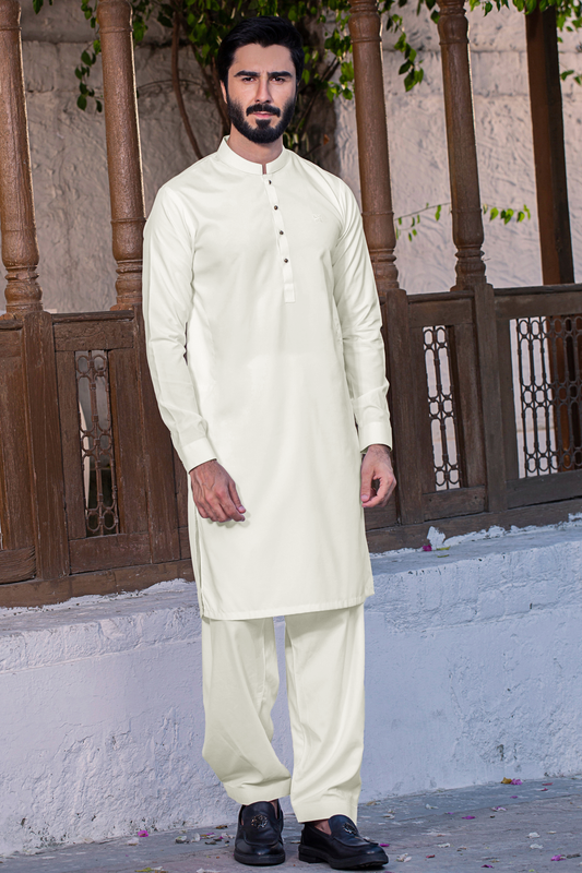 Mughal e Azam Stitched All Season Shalwar Kameez - Eggwhite