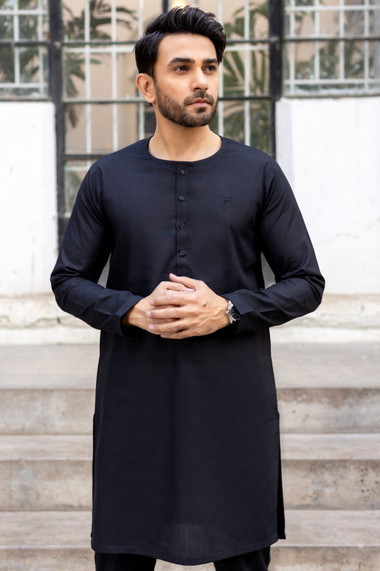 Basic Black Shalwar Kameez STITCHED - Black All Season