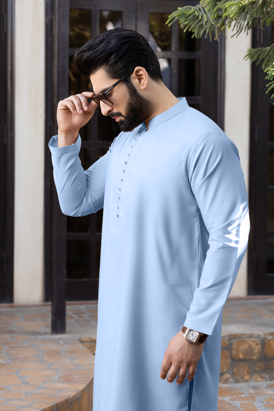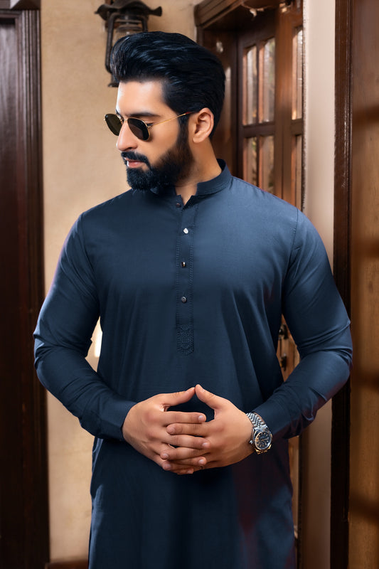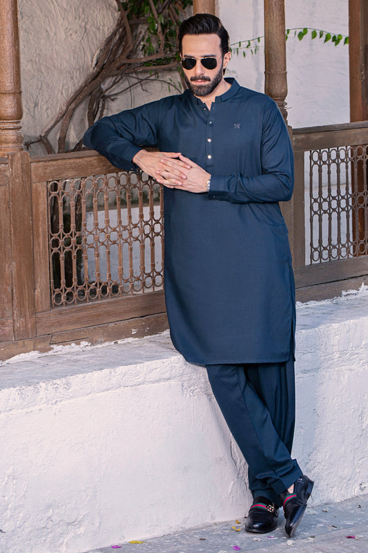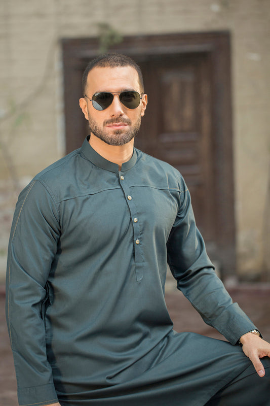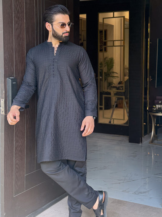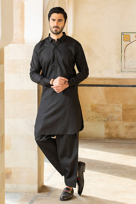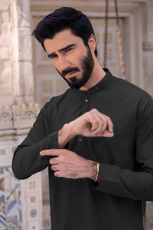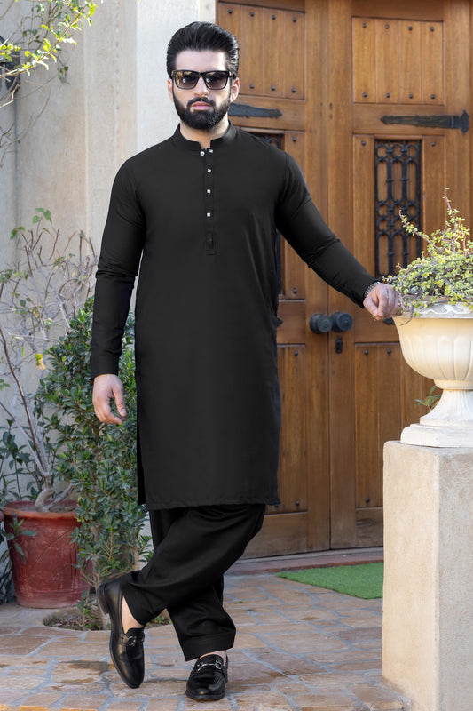 Black Nawabi Metal Button Stitched Suit Shalwar