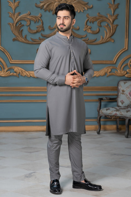 Festive Collection Stitched All Season Ban Suit - Grey Silver Button