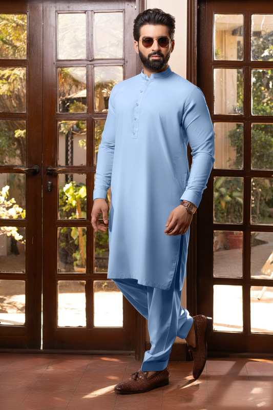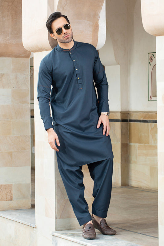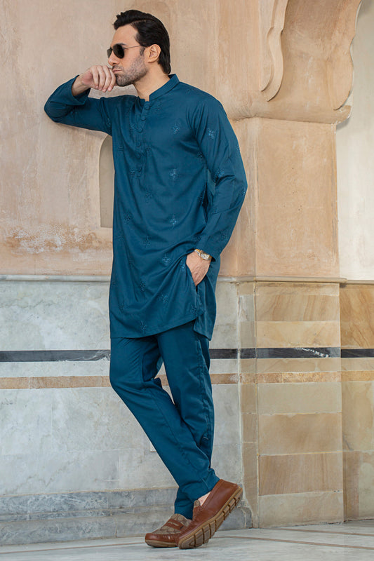 Nawabi Glass Button Stitched Suit with Shalwar - Seagreen