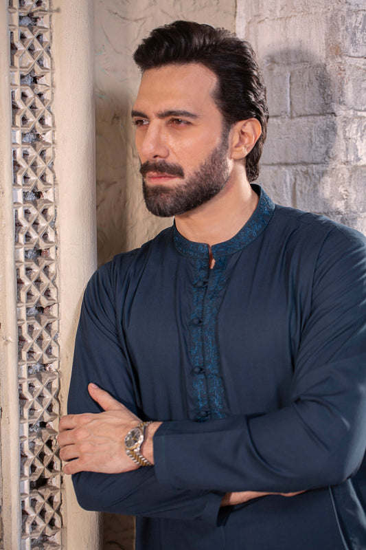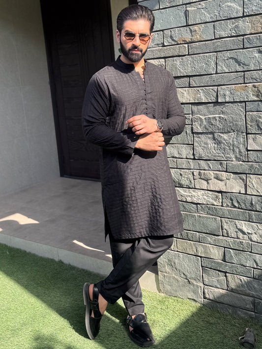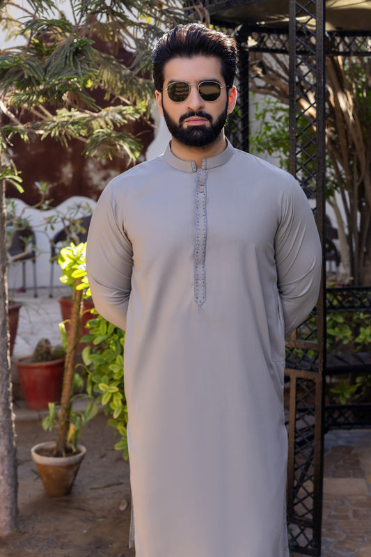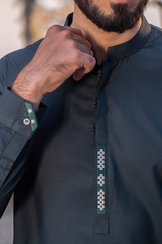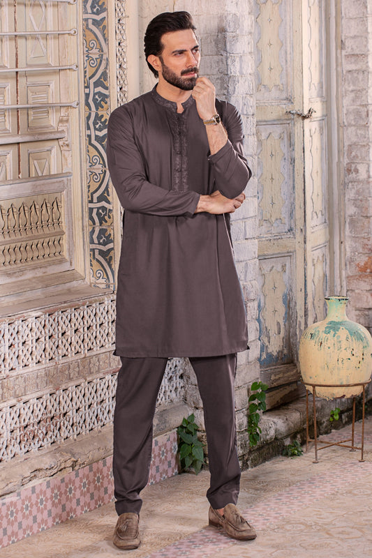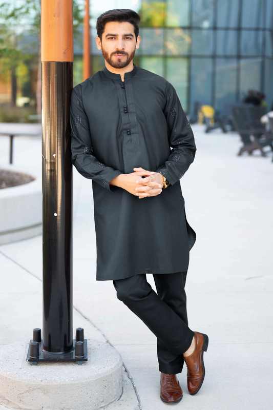 EID Special Charcoal Box Embroidered Stitched Suit with Trouser