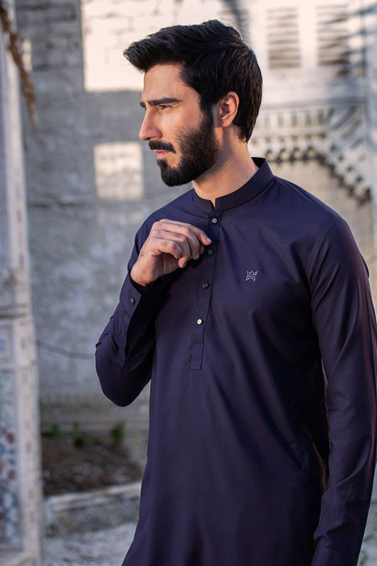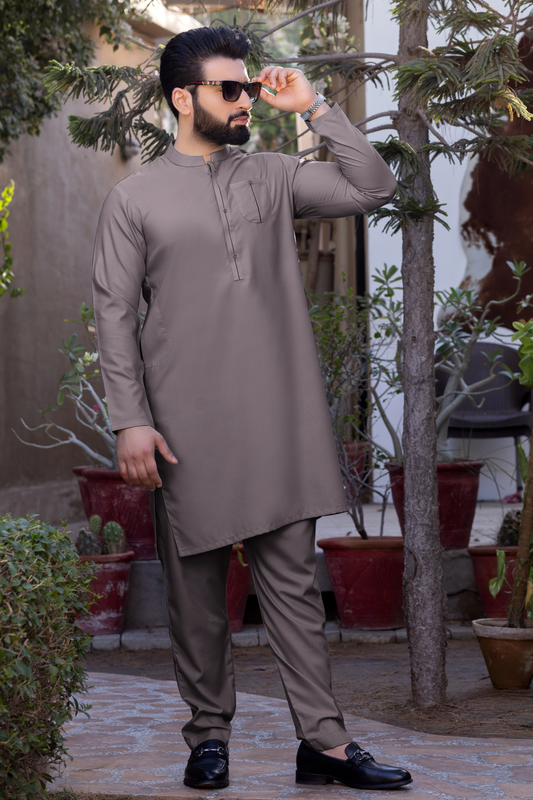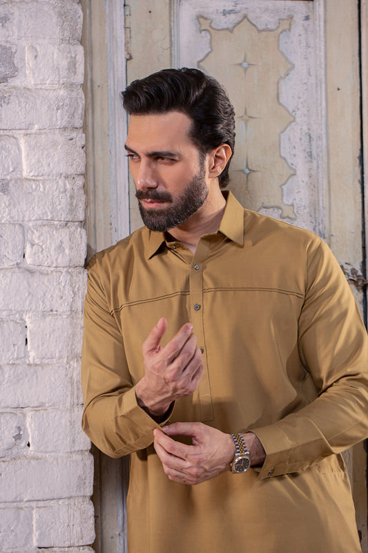 SHALWAR KAMEEZ WITH FRENCH COLLAR AND LASER LOGO - Camel