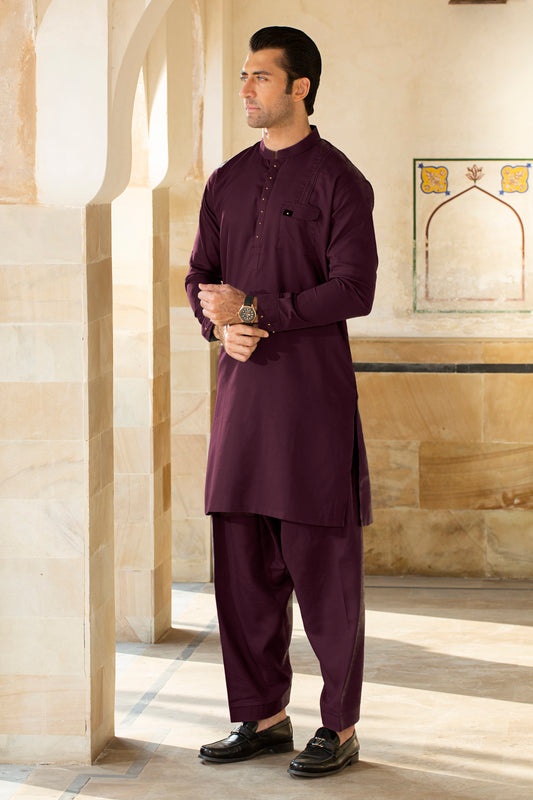 Platinum Stitched Suit with Tone Metal Button and Trouser- Purple
