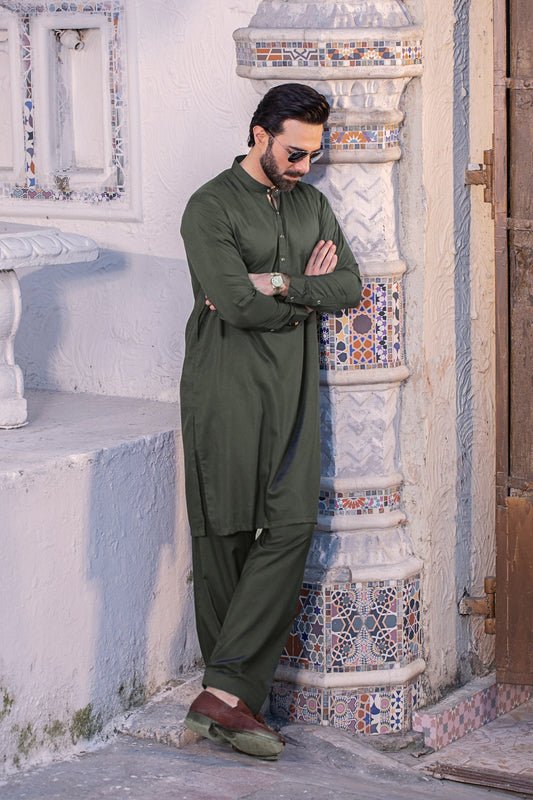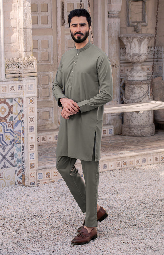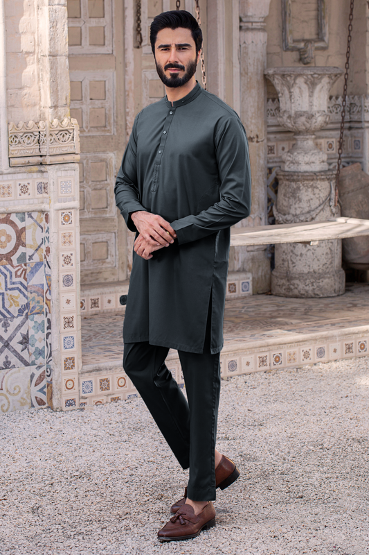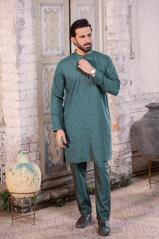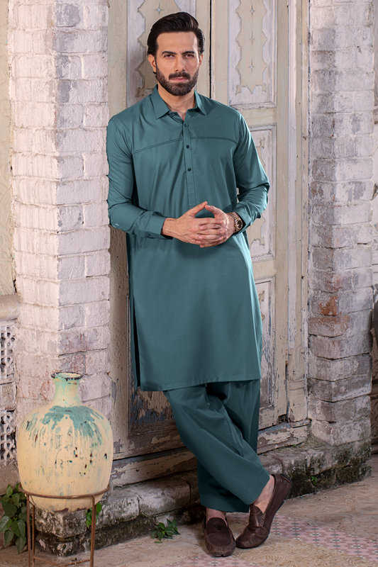 Royal Collection Stitched Suit with Shalwar - Jade Green