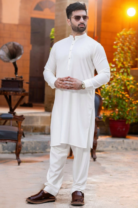Royal Embroidered Collection Stitched Shalwar with Kameez - Egg White