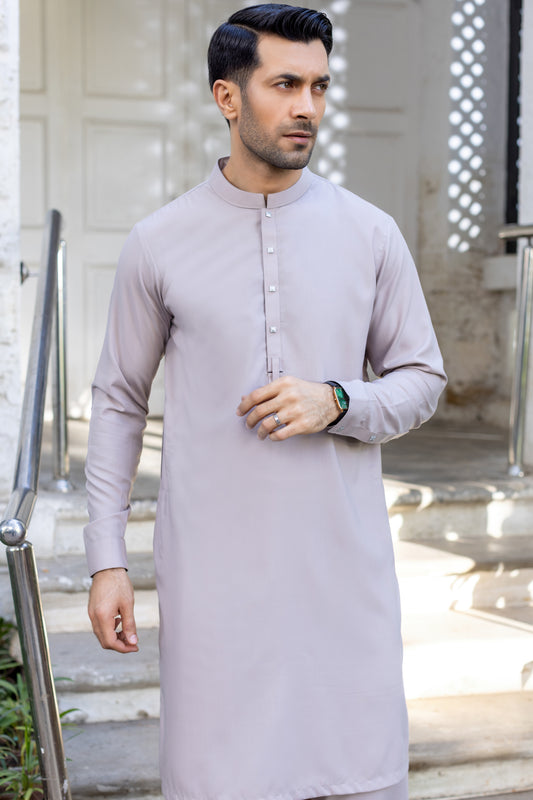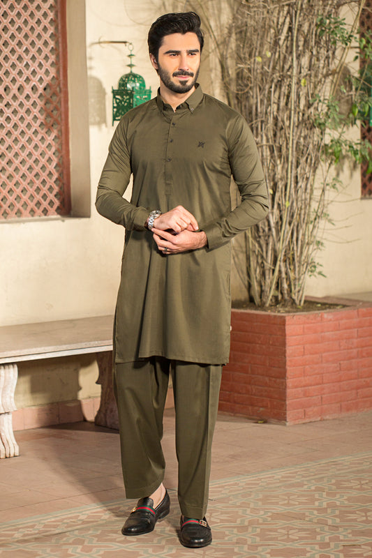 Stitched Shalwar with Kameez with Collar- Olive Green