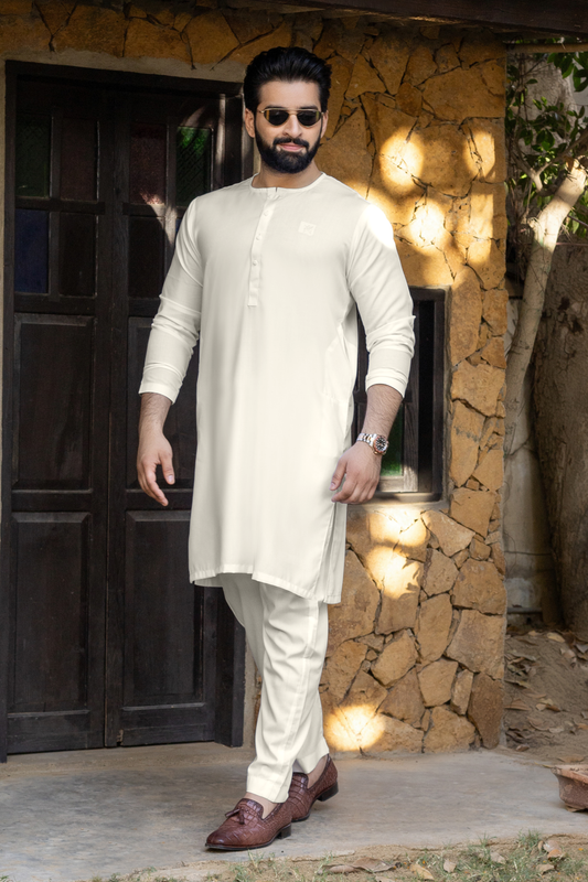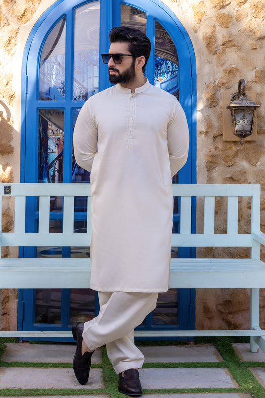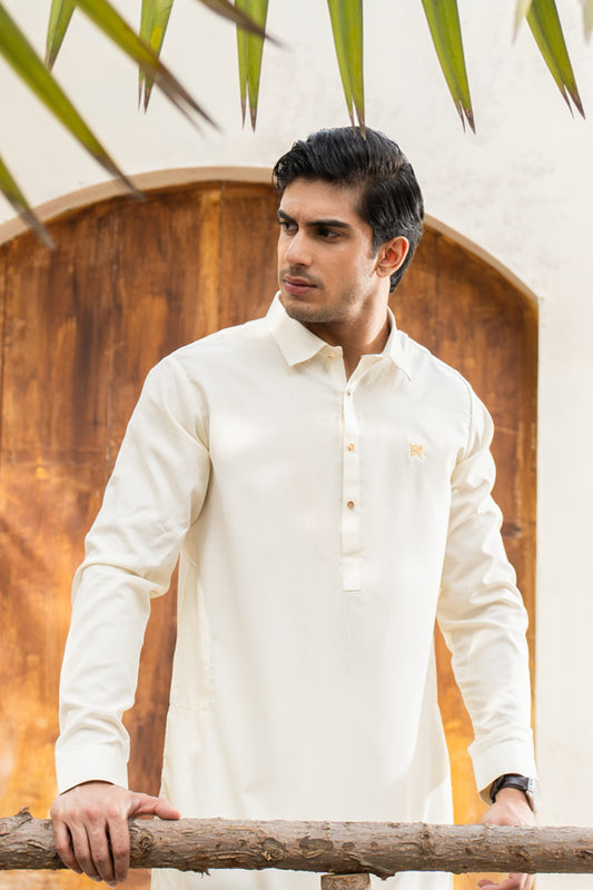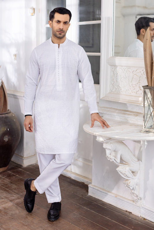EID Special Allover Box Embroidered Collection with Trouser - Eggwhite