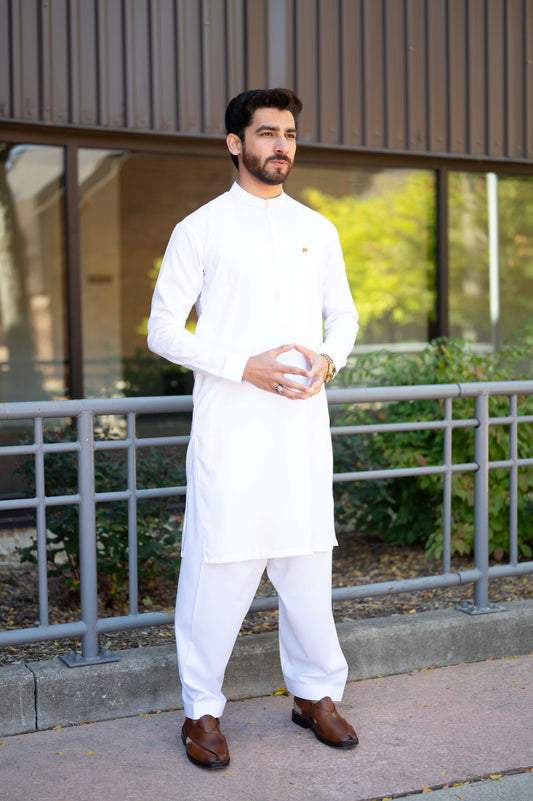 White Crisp Fall Stitched Gumpatti Suit with Shalwar